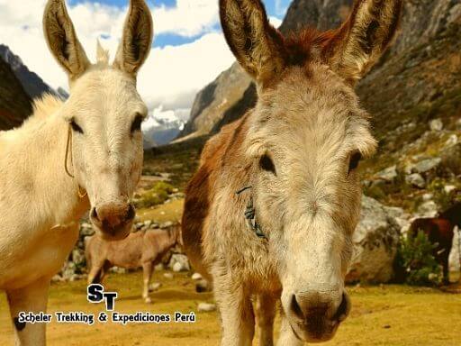* BURROS: Estas acémilas son usados para el traslado de nuestros equipos de trekking o escalada, alimentación, equipo de cocina, etc. Los burritos tienen experiencia en la ruta y pueden cargar un máximo de 35 kilos, que es lo recomendable para no maltratarlos.